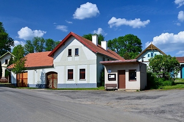 Místo této zastávky byla postavena kopie původního prvorepublikového altánu, který na návsi kdysi stával a jenž dnes slouží také jako autobusová zastávka. Výše uvedená fotografie byla pořízena pouze jako dokumentační (telefonem) a tak se omlouváme za její nízkou kvalitu.