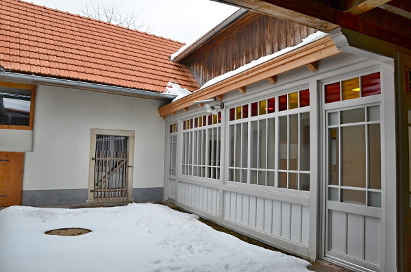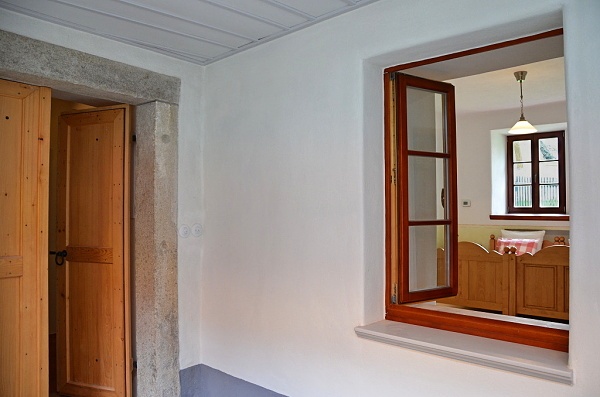 Uvnitř usedlosti naleznete absolutní soukromí! Prosklené dveře s dřívějším dřevěným plůtkem dnes již nejsou dveřmi, ale velkým oknem z koupelny.