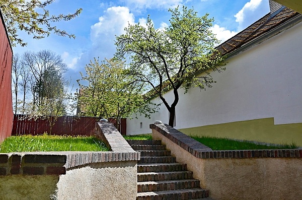 Vnitřní dvůr bude po rozmístění terakotových květináčů se zelení, také velmi příjemným místem.