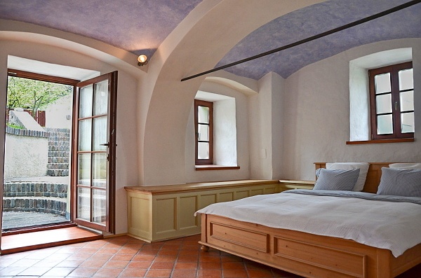 Z ložnice se dostanete francouzskými dveřmi do zahrady.