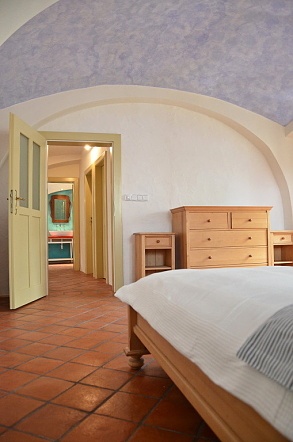 Samostatná toaleta, technická místnost a průhled do hlavní ložnice.