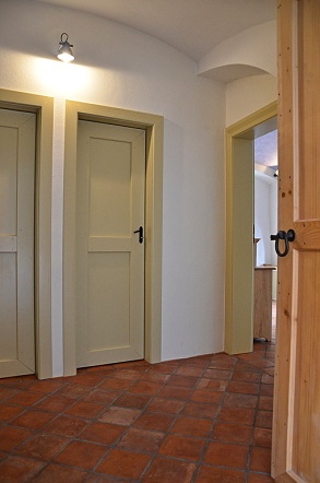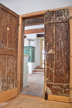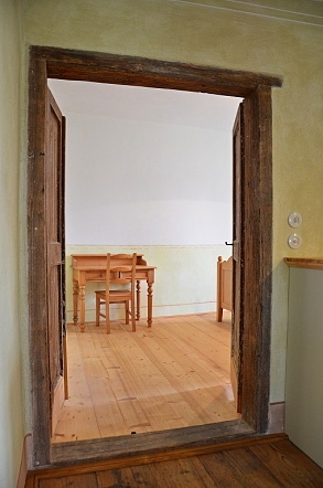 Průhled z verandy do pokoje vedle kuchyně. Dveřmi vstoupíme do dalších obytných prostor...