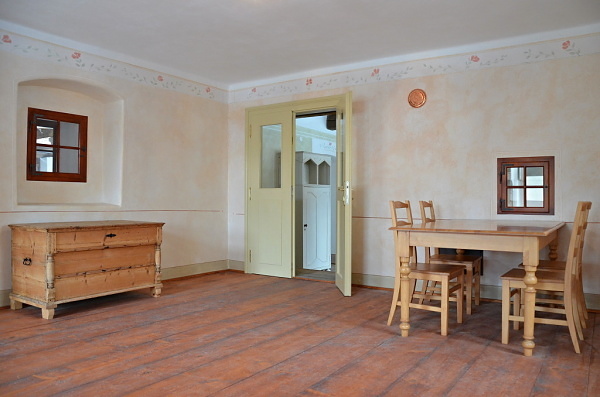 Z kuchyně se po dvou schůdcích dostanete do světnice.
