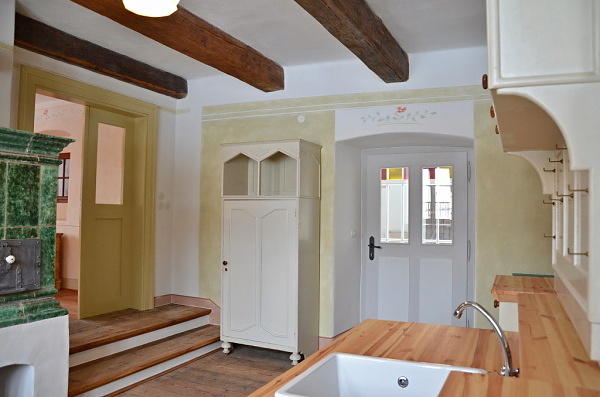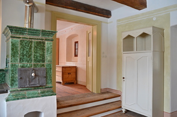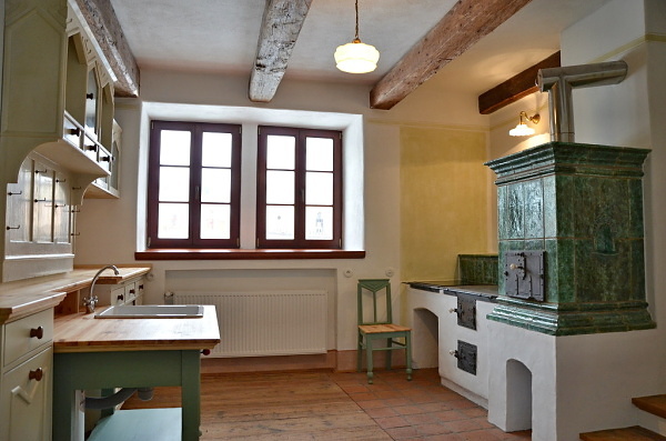 Dále nový kachlový sporák v kuchyni a možnost dalších kamen ve světnici.